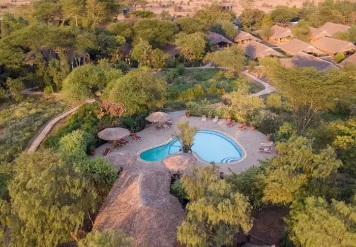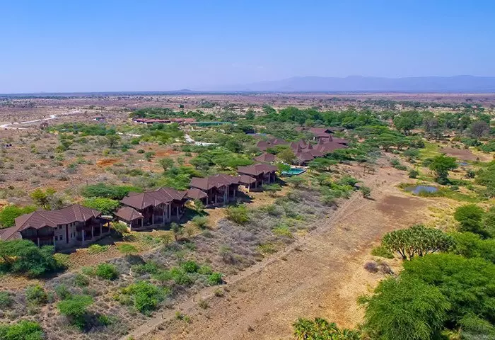 Die Ashnil Aruba Lodge liegt im Herzen vom Tsavo East Nationalpark, nahe des Aruba Dammes, der über den Fluss Voi gebaut wurde.