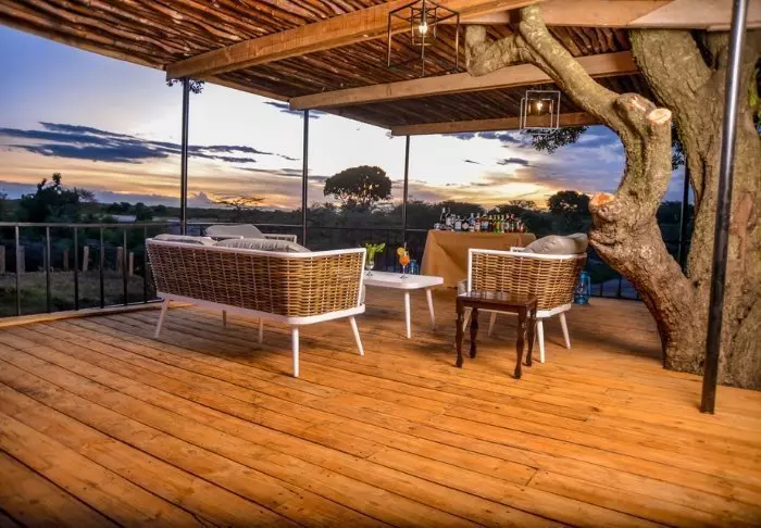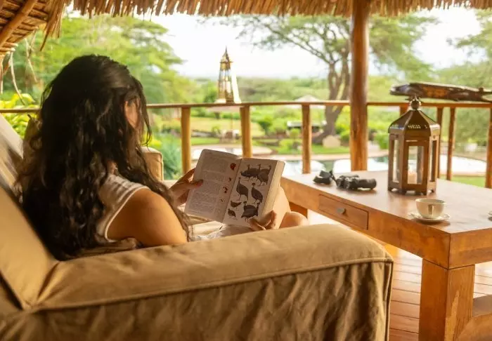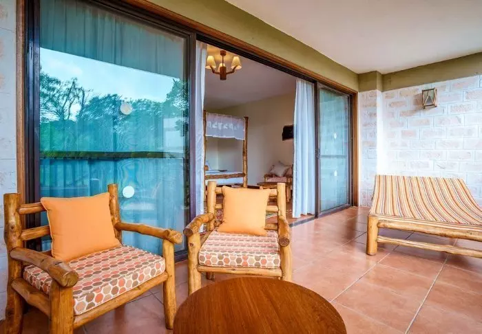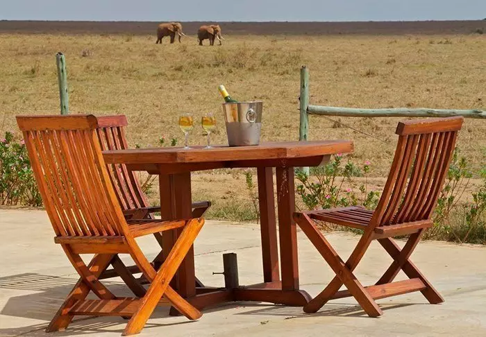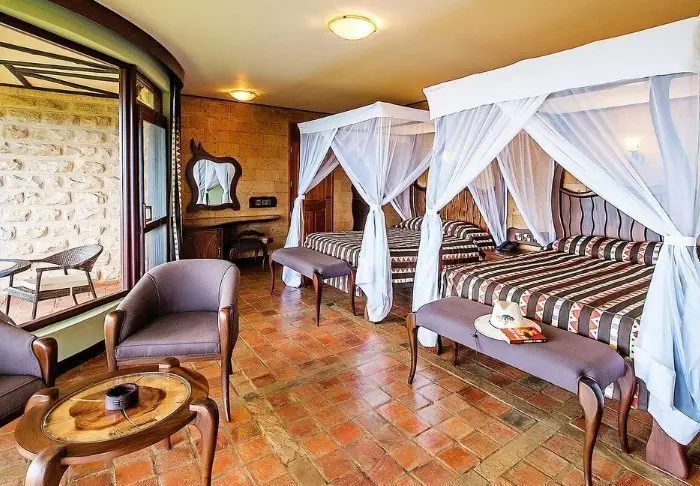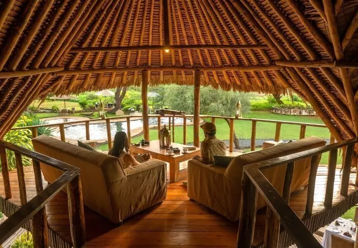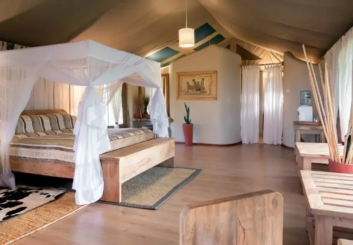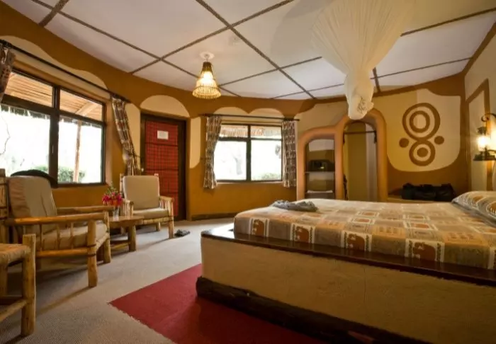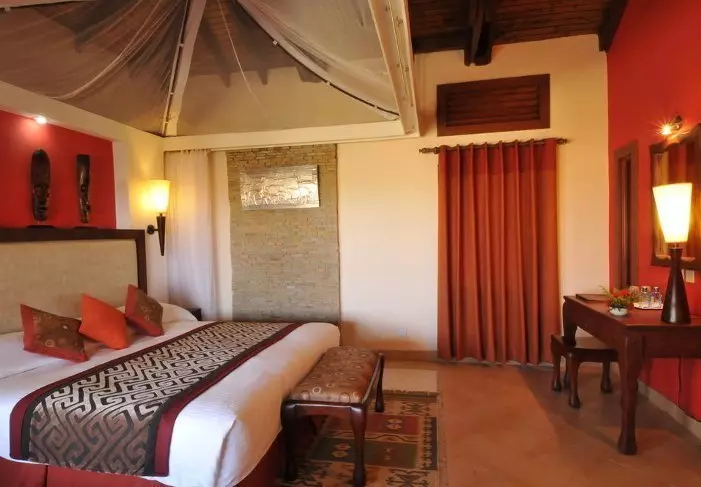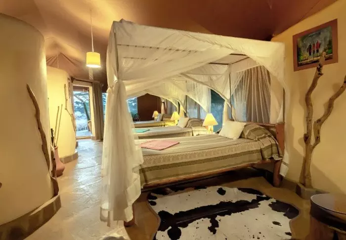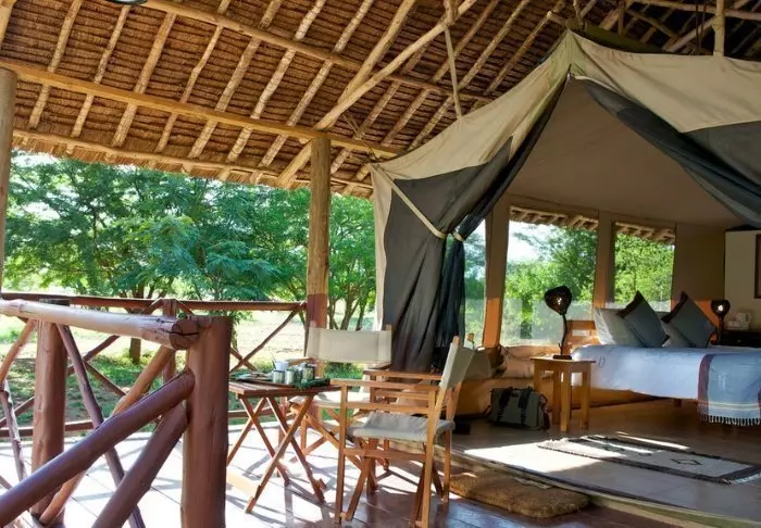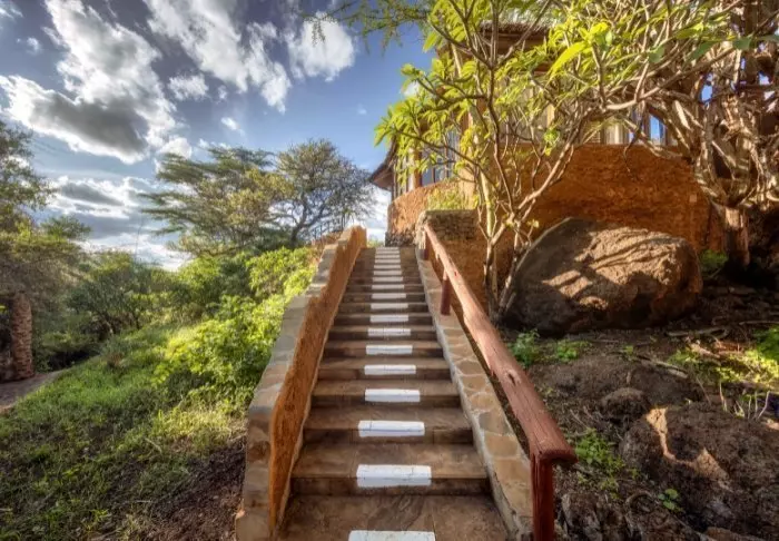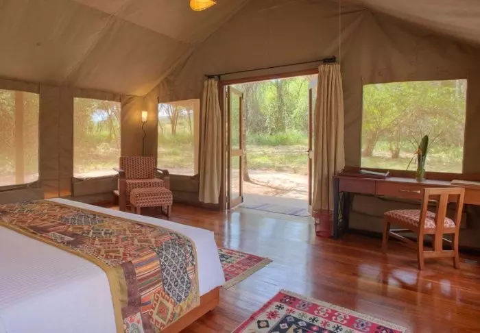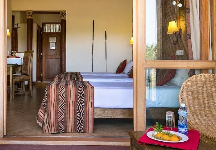 Es gibt insgesamt 56 Zimmer. Alle Zimmer haben eine eigene Veranda – einige mit Blick auf die Wasserstelle und andere mit Blick auf die Chyuly Hills.