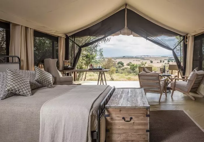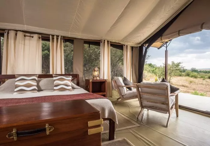 Das Camp besteht aus 15 Zelten. Es ist genügend Platz für Bett, Sitzecke, Minibar und Ihr Gepäck. Auch die Veranda bietet viel Platz und obendrein noch eine herrliche Aussicht auf die Masai Mara. Aber wenn Sie im Bett faulenzen möchten, können Sie einfach von dort aus durch die großen Fenster die Aussicht genießen. In allen Zelten gibt es WLAN.
