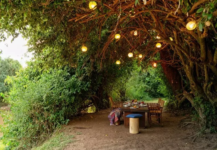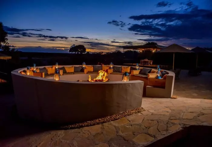 In den Gemeinschaftsbereichen befinden sich ein Speise- und ein Lounge-Zelt, die gemütlich mit weichen Lehnstühlen, Decken und Polstern in den wunderschönen Farben der Masai eingerichtet sind. Es gibt zwei Feuerstellen draußen, von denen aus Sie den Sonnenuntergang mit einem kühlen Getränk in der Hand bestaunen können.