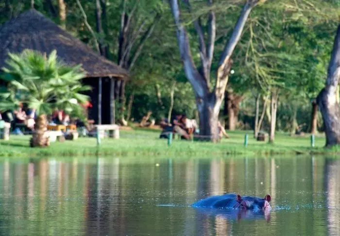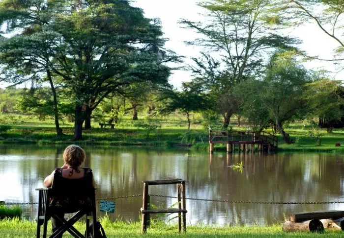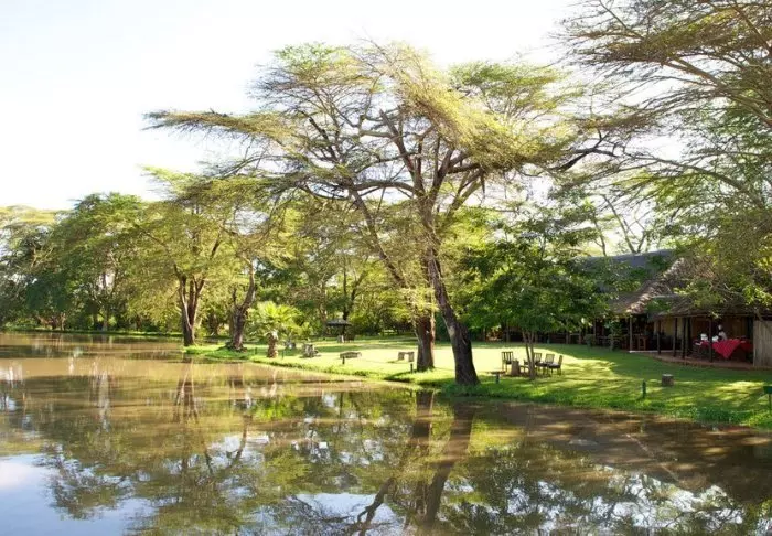 Das Camp liegt am Fluss Sante. Auf der Grünfläche vor dem Camp können Sie die wunderschöne Aussicht auf den Kilimandscharo genießen. Der Fluss hat vor der Lodge einen kleinen See gebildet, der unzählige Vögel, Flusspferde und Krokodile anlockt, die sich gerne im Wasser (und nachts auf der Grünfläche vor der Lodge) tummeln.