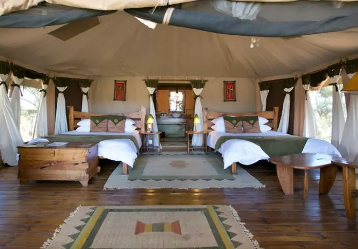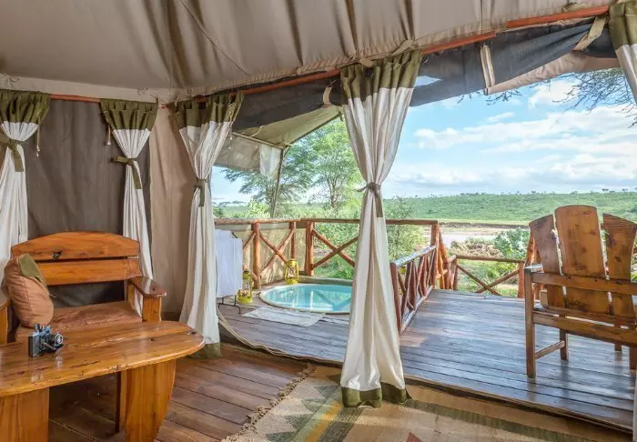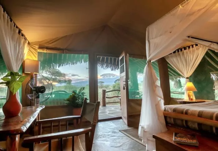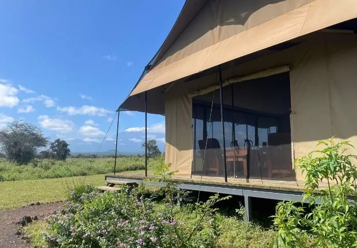 Die 29 Zelte sind geräumig und hervorragend ausgestattet. Natürlich gibt es hier nicht so viel Schnickschnack, aber man hat an alles Nötige gedacht. Zu allen Zelten gehört eine eigene Veranda. Einige haben sogar einen kleinen Pool dabei. Von sämtlichen Zelten aus sieht man den Kilimandscharo.