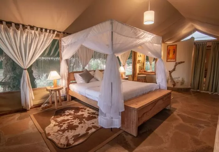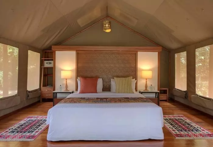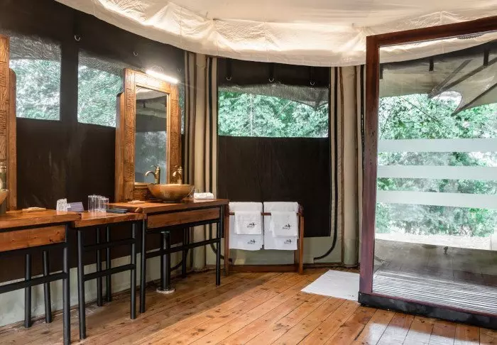 Die Zelte sind unglaublich geräumig. Trotz der Canvas-Wände verfügt jedes über eine richtige Tür und ein eingebautes Badezimmer, sodass Sie nicht auf das Gefühl verzichten, der Natur nahe zu sein.