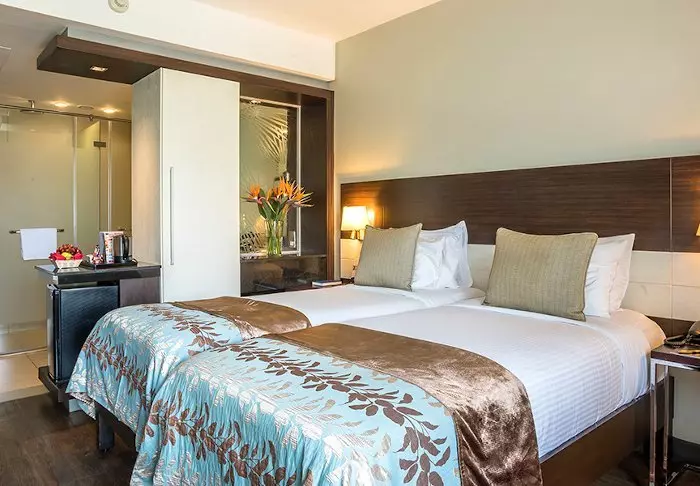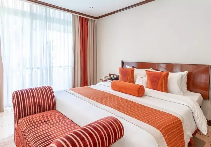 Das Hotel verfügt über 96 Zimmer, die alle in einer attraktiven Mischung aus westlichem und afrikanischem Stil eingerichtet sind. Alle Zimmer sind mit Minibar, Safe, Flachbildfernseher, Klimaanlage, Haartrockner und Möglichkeiten zum Tee- und Kaffeekochen ausgestattet.