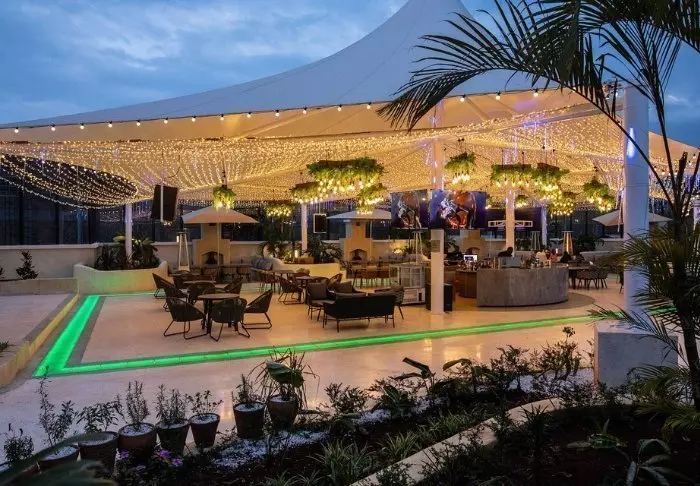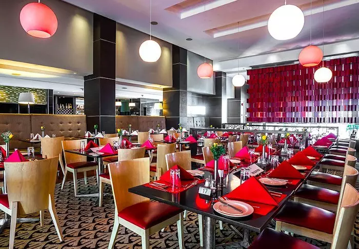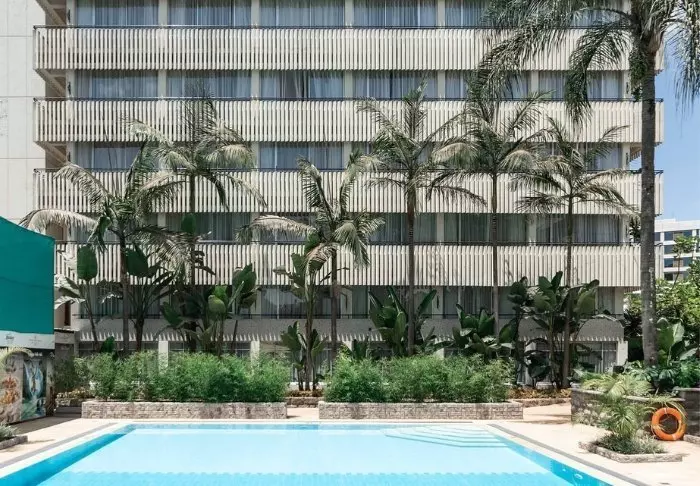 Das Hotel wurde wie ein kleiner Komplex gestaltet, in dessen Mitte ein Garten mit einem Pool an dem einen Ende liegt. Hier finden Sie Sonnenliegen und gleich daneben eine charmante Bar. Das Hotel verfügt außerdem über drei Restaurants, einen Lounge-Bereich und ein Fitnessstudio – und das Beste ist, dass die Fahrt zum Flughafen nur ca. 15 dauert. Der perfekte Ort, um eine Nacht auf der Heimreise oder bei der Anreise zu verbringen.