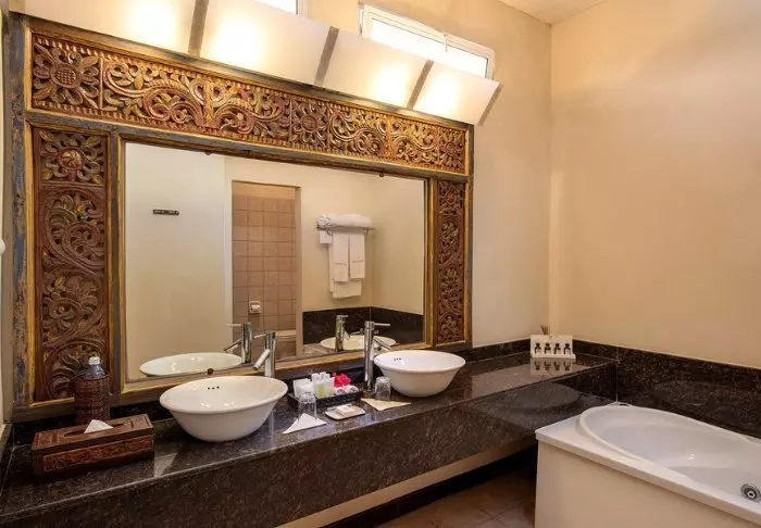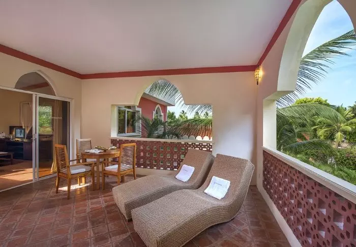 Die Zimmer liegen in kleinen Lauben, je 6 Zimmer in einem „Haus“, wobei jedes Haus nur zwei Etagen hat. Alle „Häuser“ sind miteinander und mit dem Hauptgebäude durch viele kleine erhabene Wege miteinander verbunden, die am Abend herrlich beleuchtet sind. Die Zimmer sind geräumig und verfügen alle über ein eigenes Badezimmer und eine eigene Veranda.