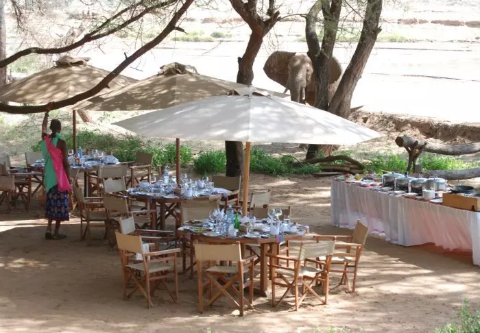 Am Ufer des „braunen Flusses“ im Buffalo-Springs-Gebiet von Samburu befindet sich dieses herrliche Camp.
