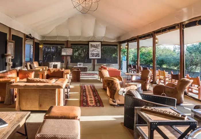Im Lager gibt es ein Gemeinschaftszelt mit herrlichen Ledermöbeln, in denen Sie sich nach dem Abendessen entspannen können, das entweder unter freiem Himmel oder im Restaurantzelt serviert wird.