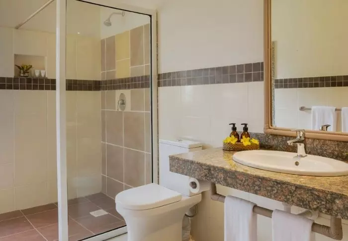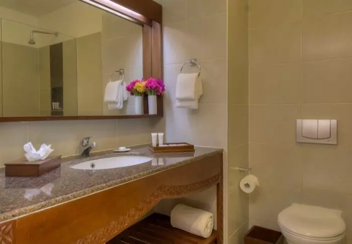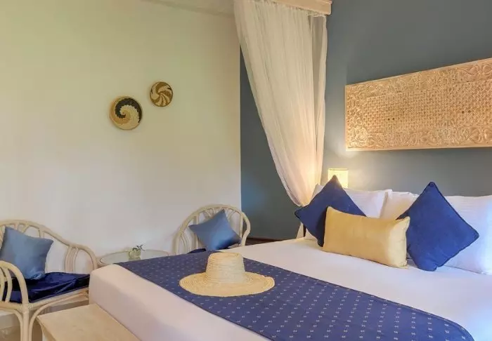 Das Resort besteht aus 165 Zimmern, die alle einen eigenen Balkon oder eine eigene Terrasse besitzen. Die Zimmer liegen in Hütten, mitten in der wunderschönen Natur. Auf allen Zimmern gibt es gratis WLAN, eine Minibar, eine Tee- und Kaffee-Ecke, ein Moskitonetz und eine Klimaanlage.