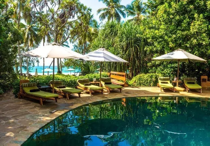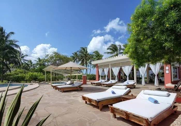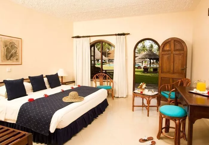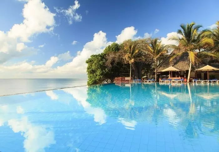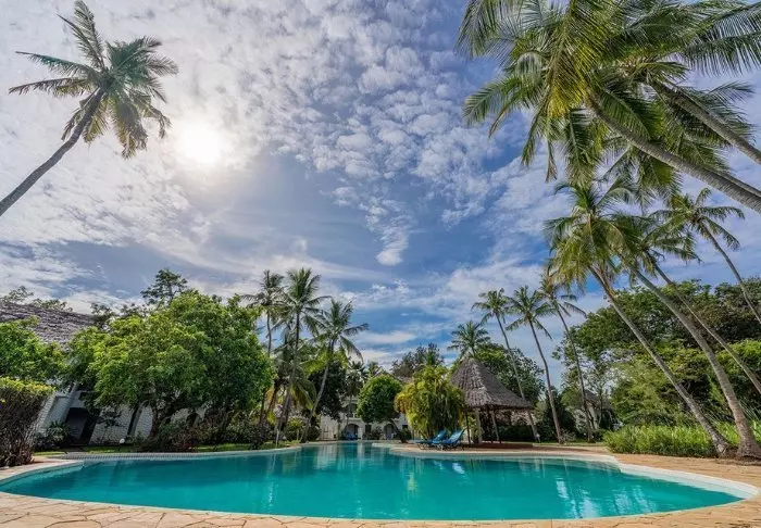 Das Hotel kann außerdem damit prahlen, den tiefsten Pool in Kenia zu besitzen. Dieser ist 5 Meter tief, weshalb er optimal ist, um tauchen zu lernen. Die Sonnenliegen sind über das ganze Areal verstreut, sodass Sie selbst entscheiden können, ob Sie am Strand, am Pool oder unter einer Palme auf der Grünfläche liegen möchten.