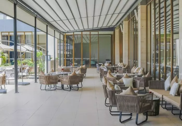 Die Lounge, die Bar und das Restaurant sind besonders geräumig. Die großen Fenster sorgen für viel Licht und vermitteln ein Gefühl von Weite und Freiheit.