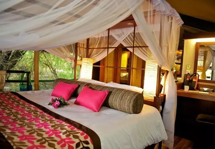 Es gibt 73 unterschiedlich große Zelte, die unglaublich liebevoll eingerichtet sind. Teilweise besitzen die Zelte Wände aus Mauerwerk, u. a. im Badezimmer. Und fast überall gibt es einen richtigen Boden. Die Seiten und das Dach aber bestehen aus Canvas, sodass Sie das Beste aus zwei Welten erhalten: ein Zelt-Zimmer mitten in der wunderbaren afrikanischen Natur!