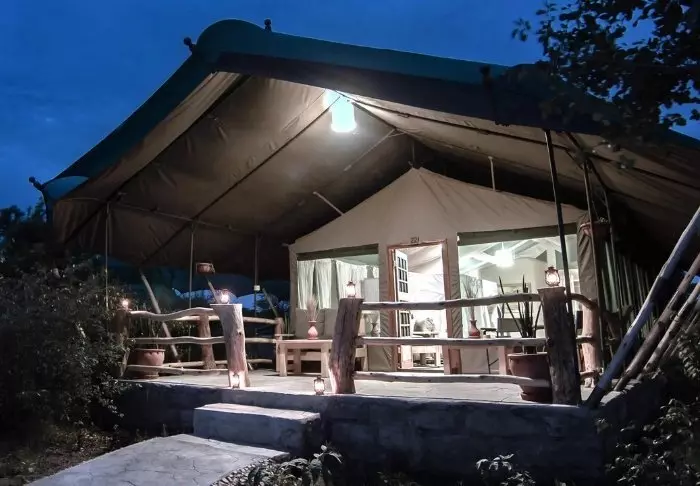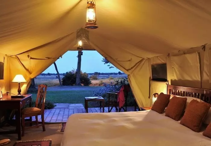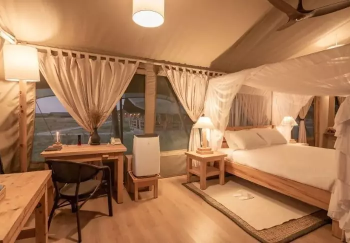 Die Zelte sind angemessen groß, jedes mit einer Veranda und einem teilweise ausgebauten Badezimmer. Alle Zelte sind mit WLAN sowie Möglichkeiten zur Zubereitung von Tee und Kaffee ausgestattet.