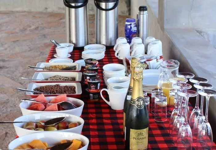 Das gesamte Camp wird mit Solarenergie betrieben. Das System ist wirklich durchdacht. Um Strom zu sparen, erhält man beispielsweise Warmwasser in Thermoskannen ins Zelt geliefert. Auf diese Weise kann man immer eine Tasse Kaffee machen, sich damit auf die Veranda setzen und den Berg bestaunen, ohne dass jedes einzelne Zelt Strom zum Wasser kochen benötigt. Die gesamte Wäsche wird von Hand gewaschen. Auch so spart man Strom und Seife, strapaziert den Stoff weniger und schafft Arbeitsplätze. Das Gemüse wird im Gemüsegarten angebaut, und die Küche verwöhnt Ihren Gaumen.