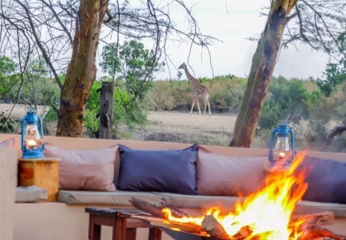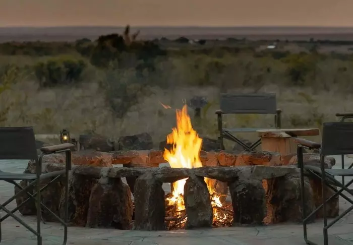 Sie werden sich sofort willkommen fühlen, und die Aussicht über die unendliche Weite auf der anderen Seite des Flusses beeindruckt wohl alle. Der Eingang zum Camp wurde so ausgelegt, dass der Blick sofort auf die gemauerte Feuerstelle mit bunten Kissen und der fantastischen Masai Mara im Hintergrund fällt.