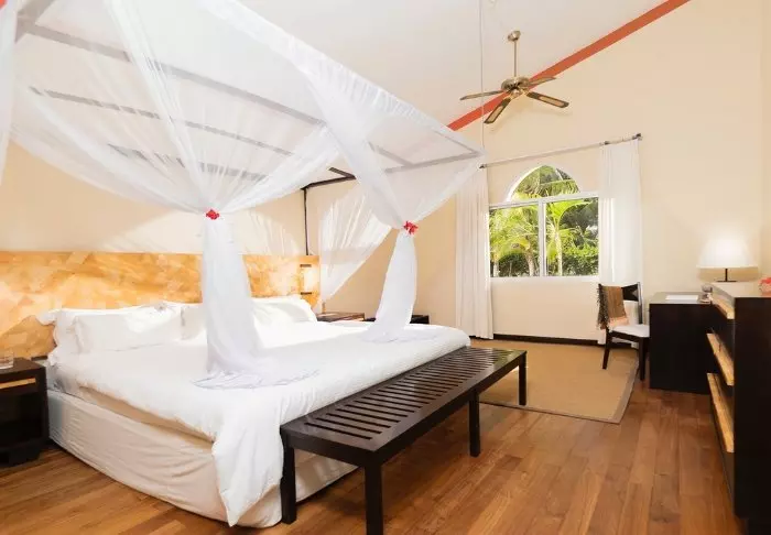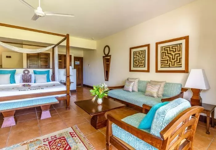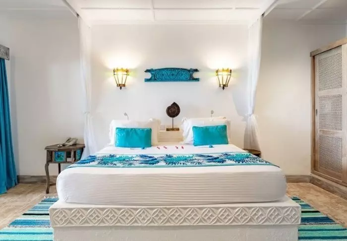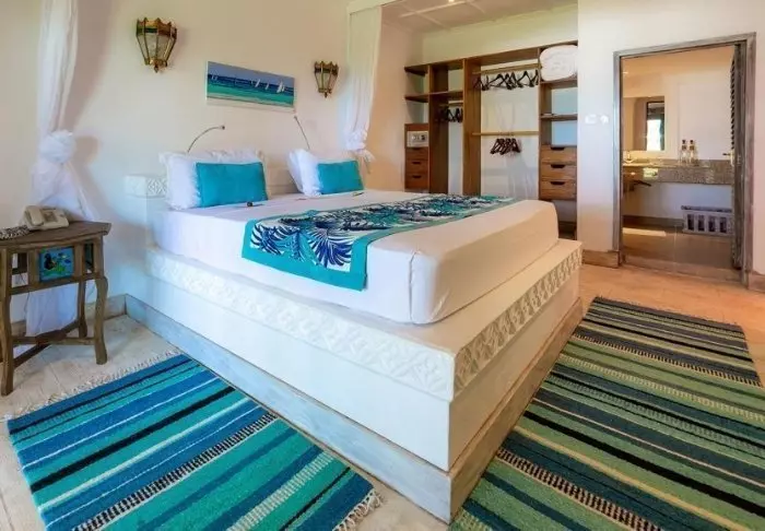 Alle Zimmer sind individuell eingerichtet, wobei man sich Inspiration von traditionellem Swahili-Design geholt hat. Ausgestattet sind alle Zimmer mit einem Safe, einer Klimaanlage, WLAN und einem Moskitonetz über den Betten.