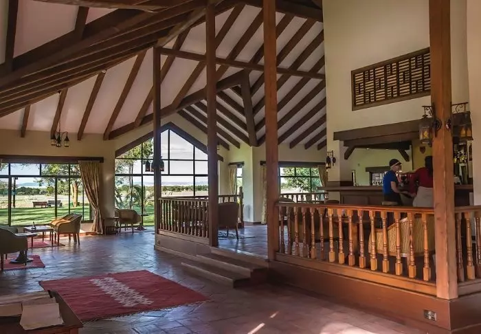Die Lodge besteht aus 7 kleinen „Häusern“ auf zwei Etagen, die jeweils 10 Zimmer haben. Die Zimmer sind in typisch afrikanischem Stil gemütlich eingerichtet. Sie verfügen alle über ein Badezimmer, einen Deckenventilator und eine Tee- und Kaffee-Ecke, aber vor allem über eine große Terrasse oder über einen großen Balkon, von dem aus Sie die Ebene und die Tiere beobachten können.