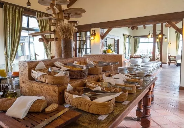 Im Hotel gibt es zwei Restaurants und Bars sowie eine gemütliche Terrasse am Pool. Wenn sich der kleine Hunger meldet, können Sie eine regionale Kaffeebar besuchen, in der man Kaffee und leckeren, selbst gebackenen Kuchen genießen kann. Das Hotel verfügt außerdem über eine Wellnessabteilung, in der man nach den Safaris eine tolle Massage buchen kann.