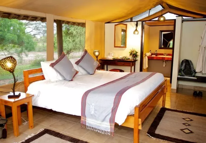 Das Olengoti Safari Camp besteht eigentlich aus zwei Lagern: einem klassischen afrikanischen Zeltlager und einem Lager mit Luxushütten.