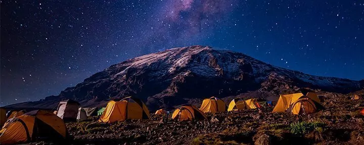 Alle Übernachtungen erfolgen in Zelten, mit Ausnahme auf der Marangu-Route. Hier wird in primitiven und schlafsaalartigen Hütten übernachtet.