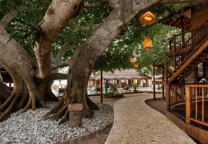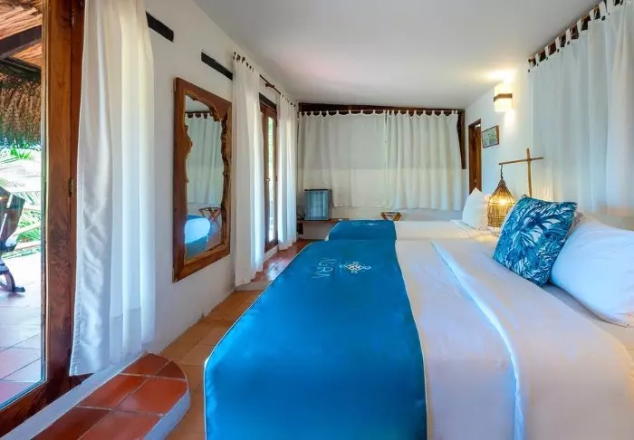 Die Zimmer sind alle geräumig und einzigartig eingerichtet. Die Möbel wurden aus nachhaltigen Materialien hergestellt und von regionalen Handwerkern entworfen. Ausgestattet sind die Zimmer mit Klimaanlage, Deckenventilator, TV-Gerät, Kühlschrank und einem eigenen Badezimmer mit Föhn. Außerdem gibt es im Hotel gratis WLAN.
