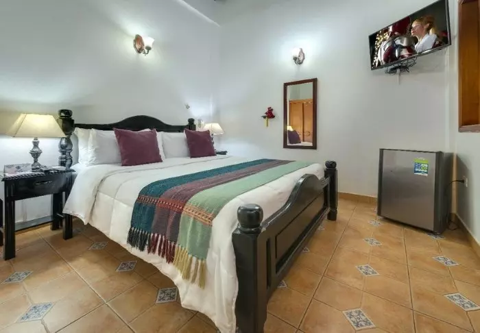 Das Hotel ist einzigartig, denn es ist authentisch. Für die traditionelle Einrichtung holte man sich Inspiration aus der Kolonialzeit. Alle Zimmer sind mit TV-Gerät, WLAN, Safe und eigenem Badezimmer ausgestattet. Das Wasser wird mithilfe von Solarzellen erhitzt.