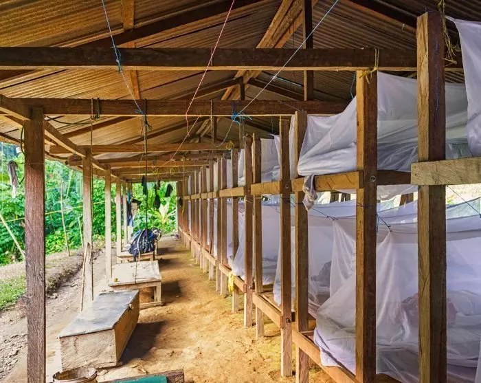 Auf dem Weg zur und von der Verlorenen Stadt verbringen Sie die Nächte in 3 verschiedenen Dschungelcamps. Die Camps sind recht einfach ausgestattet, mit gemeinschaftlichen Toiletten- und Waschräumlichkeiten. Sie bieten Platz für etwa 50 Personen und werden mit mehreren Gruppen geteilt, also denken Sie daran, Ohrstöpsel mitzubringen. Die Unterkünfte sind entweder in Etagenbetten oder Hängematten mit Moskitonetzen. Bettlaken und Decken werden in den Camps bereitgestellt, aber wir empfehlen, zusätzlich Ihren eigenen Hüttenschlafsack mitzubringen. Nachttemperaturen können auf 18-22 Grad Celsius sinken. Die Betten stehen unter einem Vordach und sind daher vor Regen geschützt.
