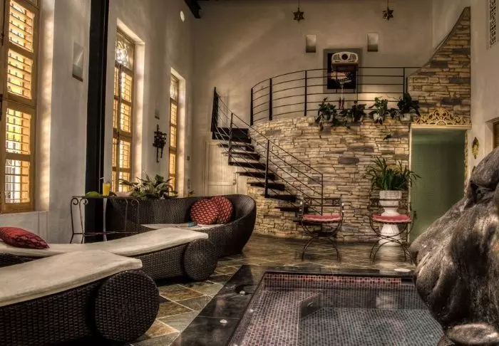 Es bietet lediglich 23 Zimmer, die alle geräumig und toll mit wunderschönen Möbeln aus dunklem Holz eingerichtet sind. Es gibt in den Zimmern eine Klimaanlage, einen Safe und eine Minibar.