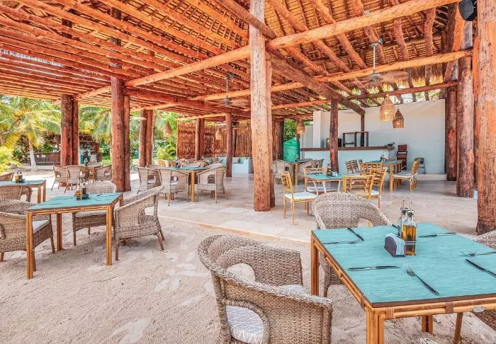 Die Mahlzeiten genießen Sie im charmanten Open-Air-Restaurant, wo Sie unter der Überdachung oder dem offenen Himmel speisen und dabei die atemberaubende Aussicht auf das Meer genießen können. Das Menü ist eine Mischung aus lokalen und internationalen Gerichten, die viele fangfrische Fische, Meeresfrüchte sowie exotische Früchte und Gemüse bieten.
