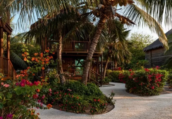 Inmitten eines tropischen Gartens gelegen, umgeben von Palmen und Mangrovenwäldern, verfügt das Hotel über einen eigenen Privatstrand. Hier können Sie das Vergnügen genießen, zu dem sanften Rauschen der Wellen des türkisblauen Wassers aufzuwachen.