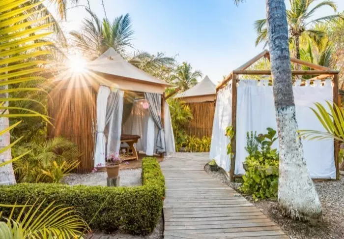 Zusätzlich können Sie verschiedene Massagen und Behandlungen im kleinen Outdoor-Spa des Hotels erwerben.