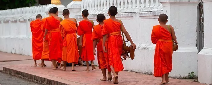 Jeden Morgen findet in den frühen Morgenstunden in Luang Prabang ein ganz besonderes Ereignis statt. Über 300 Mönche prozessieren nämlich still durch die Straßen der Stadt, um Almosen zu sammeln. Alle Familien senden einen Repräsentanten mit Lebensmitteln oder Getränken auf die Straße, die in den Sammelkisten der Mönche verteilt werden. Es ist schwer, sich nicht von der respektvollen Stille und Würde in den Bann ziehen zu lassen, mit der dieses tägliche Ritual stattfindet.