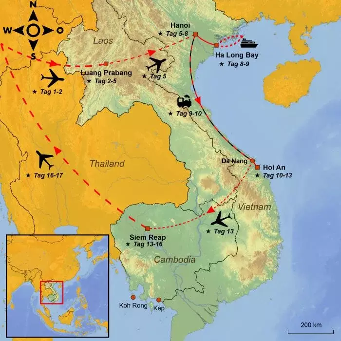 Auf dieser Reise entdecken Sie drei der faszinierendsten Länder Indochinas – Laos, Vietnam und Kambodscha – und erleben jede Nation mit ihrer eigenen Geschichte, Kultur und beeindruckenden Natur.
