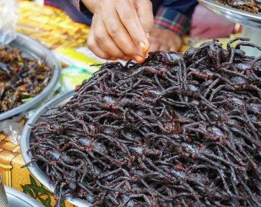 Von Siem Reap fahren Sie weiter gen Süden in Richtung der Hauptstadt – durch eine wunderschöne Landschaft aus Reisfeldern und kleinen Dörfern. Die Strecke führt teilweise am Ufer des Tonlé-Sap-Sees entlang, und Sie legen einen Stopp in Skuon ein, einer Stadt, die für ihre typischen kambodschanischen Spezialitäten berühmt ist.
