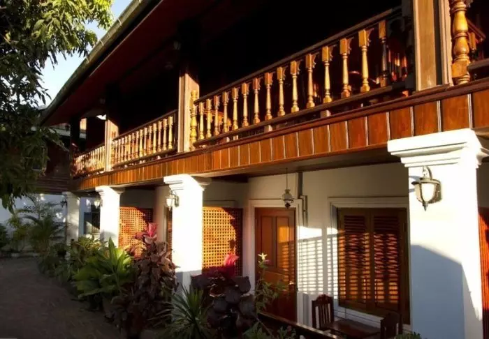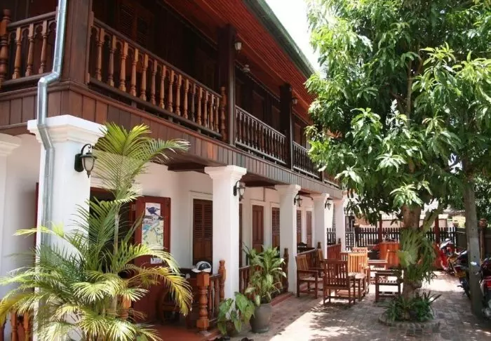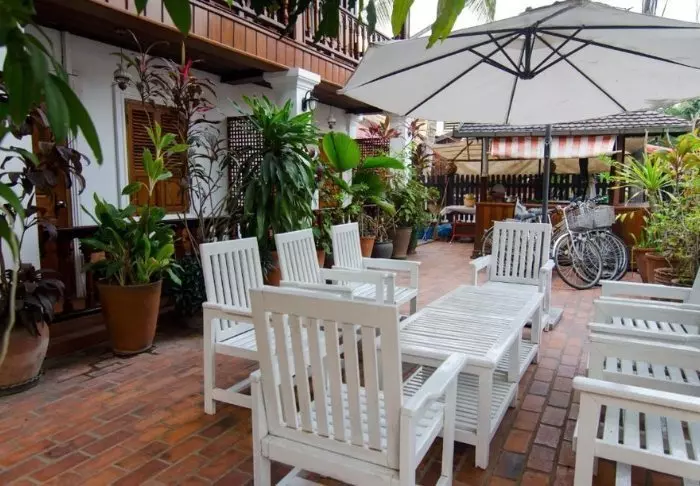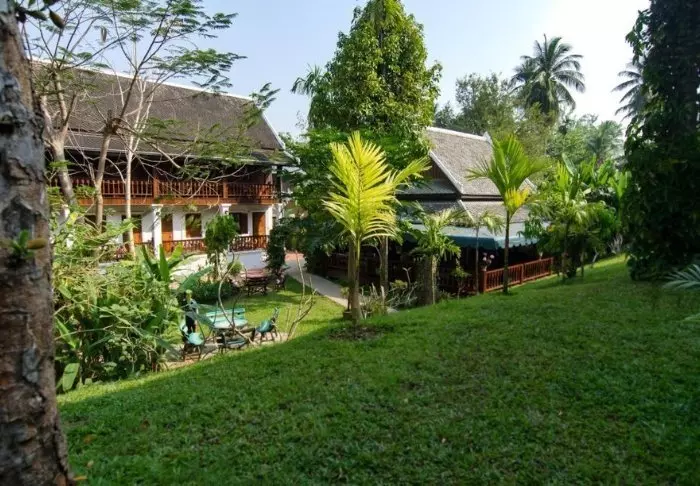 Das Hotel ist um drei denkmalgeschützte Gebäude gebaut und kombiniert traditionelle laotische Architektur mit Boutique-Stil. Die Umgebung mit üppigen Gärten und Lotusteichen ist vollkommen entspannt, trotzdem das Stadtleben sich direkt vor der Tür abspielt.