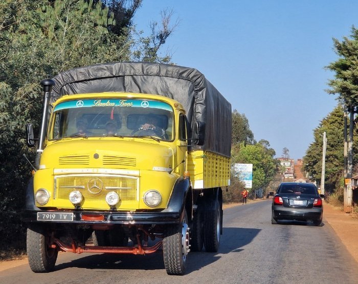 Nach ein paar Stunden Fahrt durch die leicht hügelige Plateau-Landschaft mit allen Reisfeldern ändert sich die Natur. Die Hügel werden höher und die Wälder dichter. Der Fahrer navigiert fachmännisch durch die Haarnadelkurven, und hier und dort können Sie den Fluss am Boden der Täler erblicken. Der Verkehr fließt – bis er es plötzlich nicht mehr tut. Alte Mercedes-Benz-Lkw aus der französischen Kolonialzeit werden einfach am Straßenrand geparkt und behindern manchmal den Verkehr. Oder ein kleiner Stand an der Straße ist so beliebt, dass der Verkehr vollständig zum Stillstand kommt. „Mura mura“, wie man in Madagaskar sagt – immer mit der Ruhe.