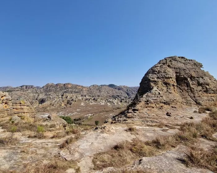 Wenn die Savanne in eine Mondlandschaft mit wunderschönen Sandsteinfelsen übergeht, wissen Sie, dass Sie im Isalo National Park angekommen sind.