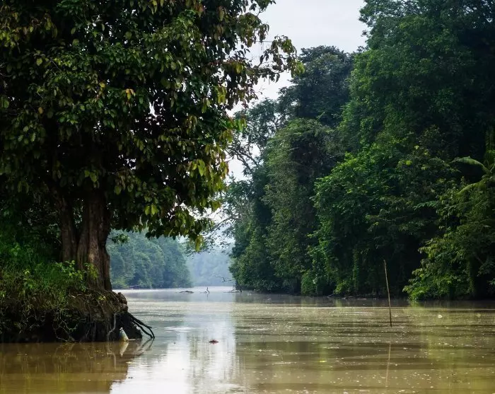 In Sabah können Sie die magischen Regenwälder erkunden, während Sie den sich windenden Kinabatangan-Fluss entlangsegeln. Mit etwas Glück hören Sie das ferne Gebrüll von Affen oder entdecken ein Salzwasserkrokodil, welches seine Schnauze aus dem Wasser hebt.