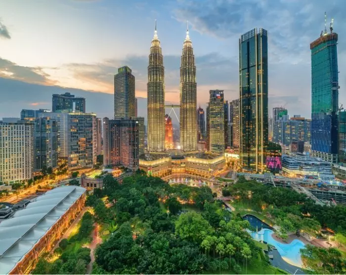 Im Herzen der Stadt stehen die faszinierenden Petronas Twin Towers, die mit 451 Metern die höchsten Zwillingstürme der Welt sind (Stand 2025). Sie können ihre schöne islamische Architektur vom Boden aus bewundern oder sich hoch hinauf wagen und einen Panoramablick über Kuala Lumpur aus dem 86. Stockwerk genießen.
