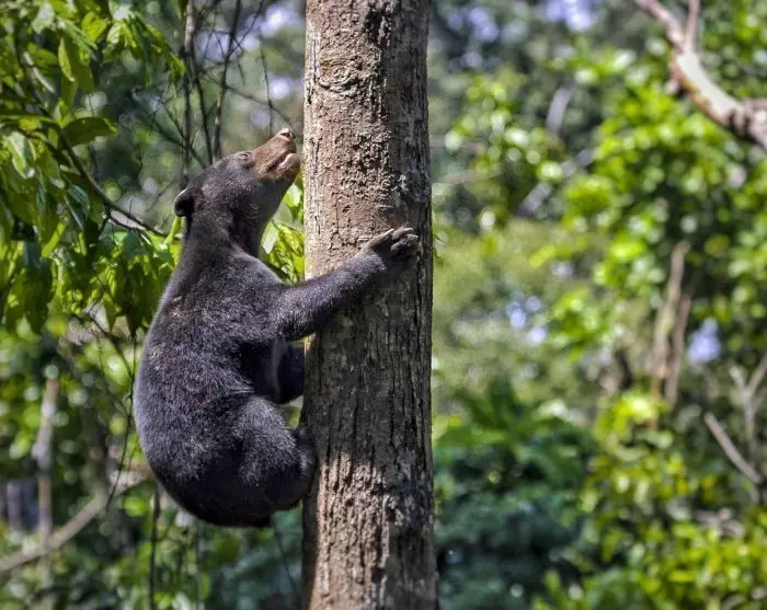 Von der Welt der Orang-Utans geht es weiter zum benachbarten Sun Bear Conservation Centre, um den Sonnenbär zu erleben. Die kleinste Bärenart der Welt zeichnet sich durch ihr kurzes schwarzes Fell und eine helle, halbmondförmige Markierung auf der Brust aus. Diese ähnelt dem Sonnenaufgang , und daher stammt der Name des Sonnenbärens. Das Zentrum leistet einen entscheidenden Beitrag zur Sicherung der Zukunft des Sonnenbären in seinem natürlichen Lebensraum, dem Regenwald von Borneo.