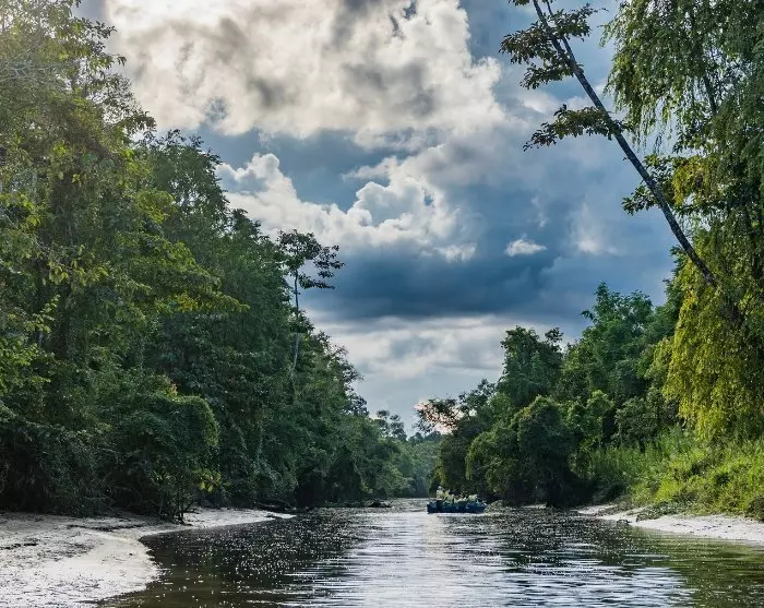 Spät am Nachmittag sind Sie zu einer weiteren Bootstour eingeladen, bevor der Tag zur Nacht wird. Während das Boot tuckert, wird Ihr Guide Sie über den Regenwald aufklären und Ihnen helfen, die umliegende Flora und Fauna zu entdecken. Erneut haben Sie vielleicht das Glück, die außergewöhnliche Tierwelt des Regenwaldes zu beobachten, sei es ein Salzwasserkrokodil im Fluss oder ein Silberner Blattaffe, der in den Baumkronen von Ast zu Ast schwingt.