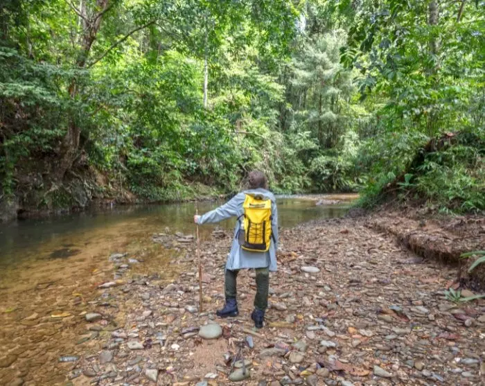 Bei Ihrer Ankunft begeben Sie sich auf ein ausgedehntes Netz von Wanderwegen durch den Regenwald. Hier erkunden Sie die vielfältige Vegetation des Parks, die von Mangroven über tropische Sümpfe bis hin zu Klippen- und Strandökosystemen reicht. Auf Ihrem sich windenden Weg halten Sie Ausschau nach der einzigartigen Tierwelt des Nationalparks, einschließlich Silberblattaffen, Langschwanzmakaken, Bartschweinen, Waranen, Schlangen und einer Vielzahl von Vogelarten. Im Regenwald Bakos könnten Sie auch das Glück haben, die rotpelzigen Nasenaffen Borneos zu treffen, die stolz ihre Nasen zur Schau stellen – je größer die Nase, desto attraktiver gilt ein Nasenaffe unter den Weibchen.