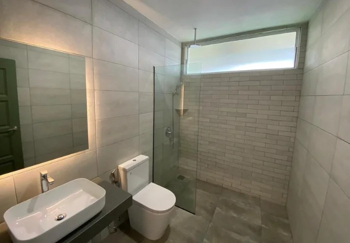 Die Räume sind groß (min. 44,6 m2) und mit Holzfußböden und Mahagonimöbeln ausgestattet, die für eine natürlich warme Atmosphäre sorgen, während frische Orchideen den Weiß-, Schwarz- und Grautönen ein wenig Farbe verleihen. Die großzügigen Fenster der Räume schaffen eine harmonische Verbindung zur Natur und eröffnen einen malerischen Ausblick auf die üppig grüne Umgebung.
