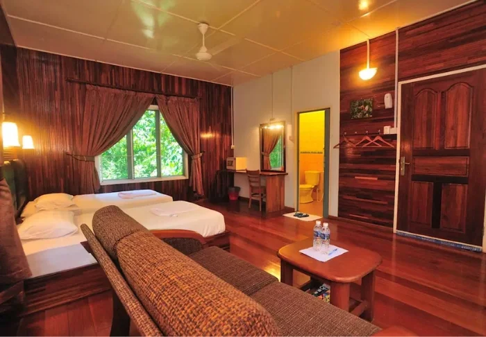 Während Ihres Aufenthalts können Sie sich darauf freuen, in einem der 40 wunderschön ausgestatteten Zimmer der Lodge zu residieren. Diese Räume verbinden traditionelle Borneanische Ästhetik mit modernem Komfort, und jedes Zimmer bietet einen atemberaubenden Blick auf die dichte Dschungellandschaft. Alle Zimmer sind mit Annehmlichkeiten wie Klimaanlage, einer Kaffee- und Teestation sowie einem Badezimmer mit Dusche, Haartrockner und kostenlosen Pflegeprodukten ausgestattet.
