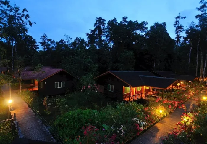 Das Resort ist aus einzigartigem, dunklem Holz gebaut und fügt sich dezent in die Farbpalette des Regenwaldes ein. Aber lassen Sie sich nicht täuschen: Das Borneo Sepilok Rainforest Resort ist ein wahres Juwel, bei dem kleine Details in jedem Teil der Einrichtung für eine ganz besondere Atmosphäre sorgen. Sie werden in einer der geräumigen Holzhütten des Resorts übernachten, bei denen besonderer Wert auf Komfort und Qualität gelegt wurde.