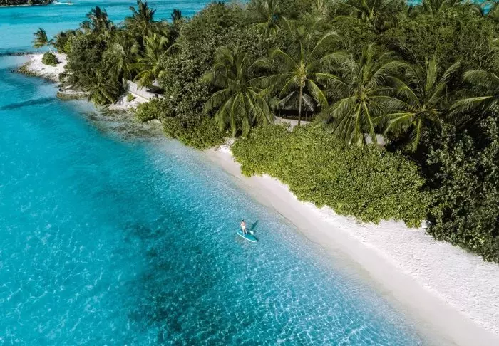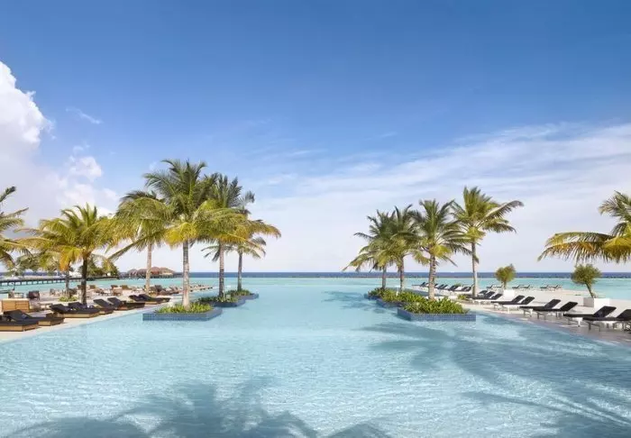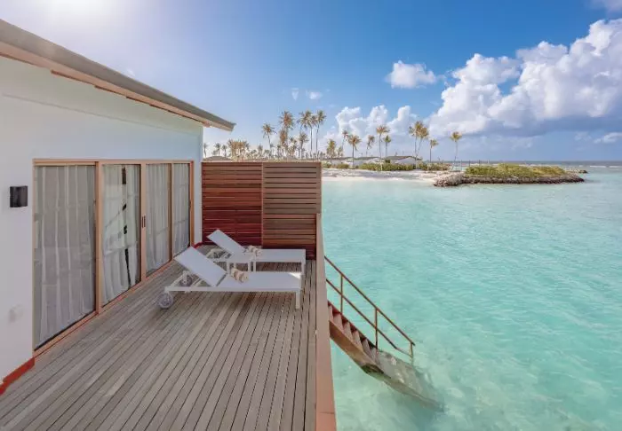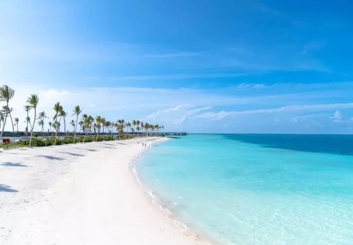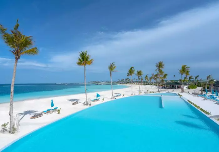 Die Insel ist von einer wunderschönen türkisfarbenen Lagune und einem fast blendend weißen Sandstrand umgeben, an dem Sie auf Ihrer privaten Sonnenliege die Meeresbrise genießen können. Sie können auch direkt vom Strand aus zwischen bunten Fischen und Schildkröten schwimmen und schnorcheln. Im Jahr 2016 hat Meeru das Projekt „Coral Garden“ ins Leben gerufen, mit dem nach einer Korallenbleiche in den Korallenriffen der Malediven Korallen in der Lagune rund um Meeru neu gepflanzt werden sollen, und das Ergebnis ist im klaren Wasser deutlich sichtbar.
