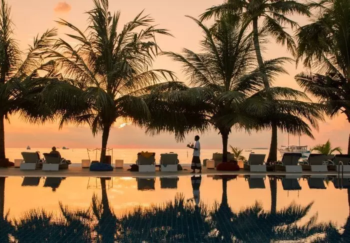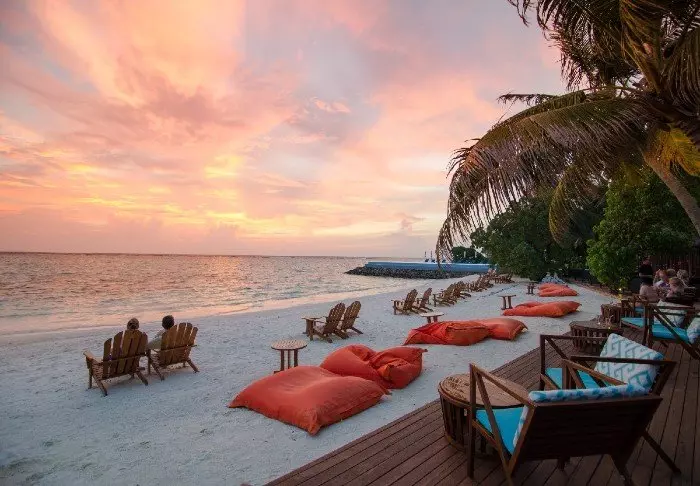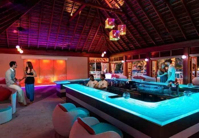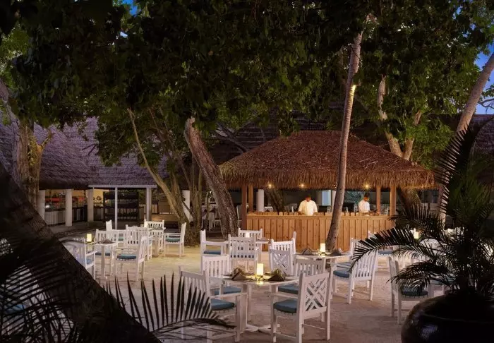 Abends, wenn die Sonne langsam untergeht, können Sie einen Drink in einer der Lounge-Bars der Insel genießen, die eine entspannte Atmosphäre mit Blick auf den Strand bieten.