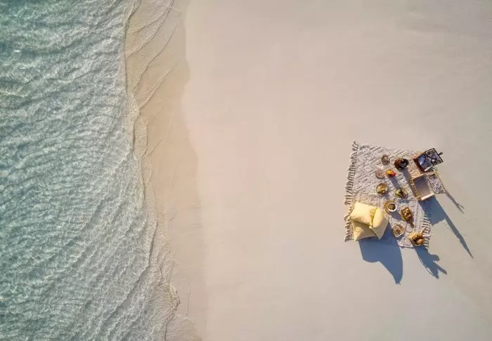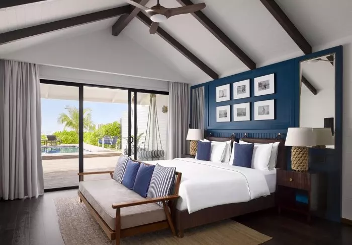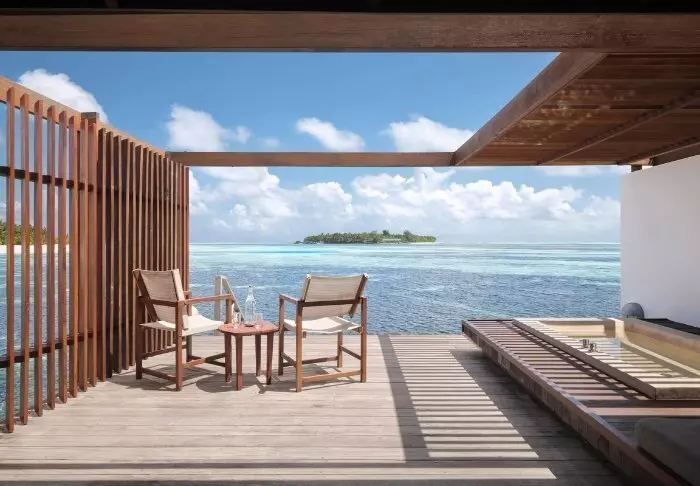 Der Pier schwebt über dem türkisblauen Wasser, und das Personal empfängt Sie bereits. Sie sinken mit den Zehen in den kreideweißen Sand und bekommen ein Willkommensgetränk angeboten, während sich das Personal um Ihren Check-in kümmert. Anschließend werden Sie zu Ihrer Villa geführt.
