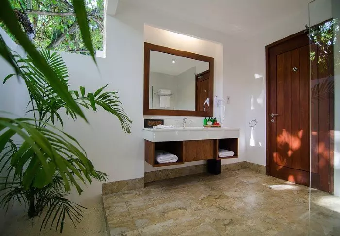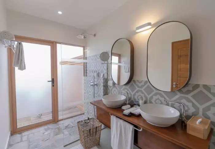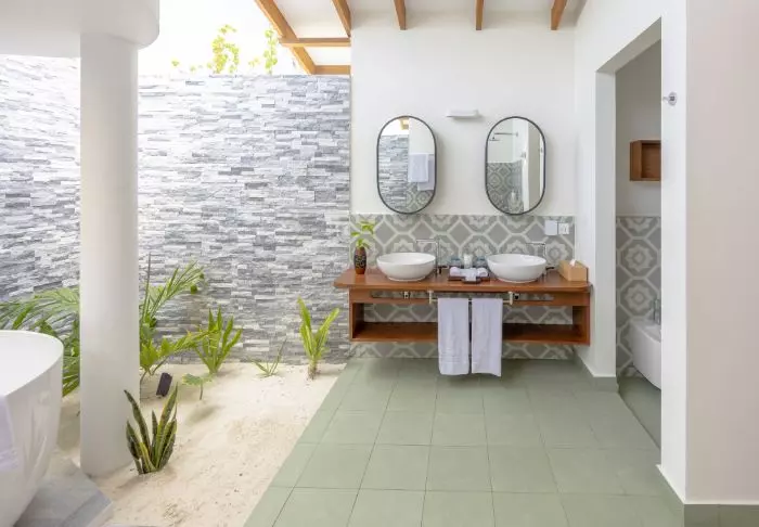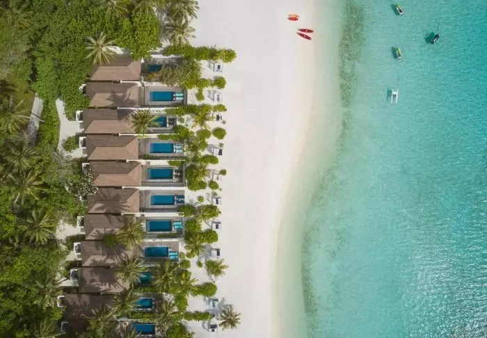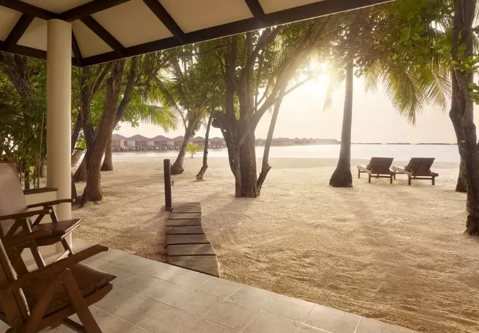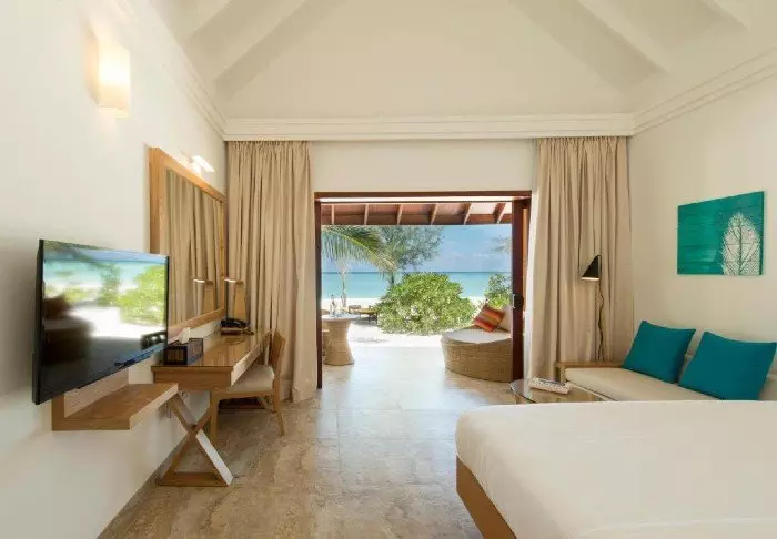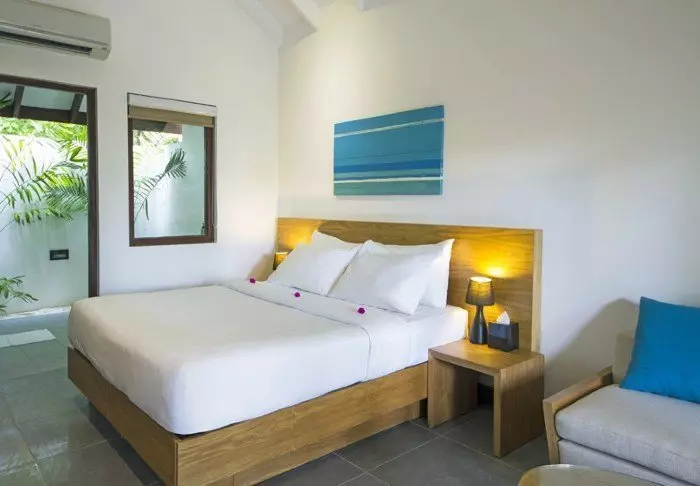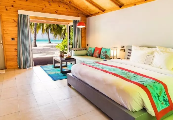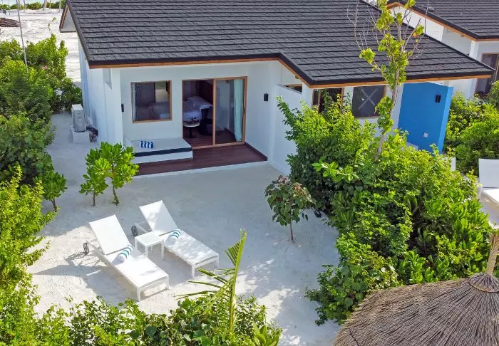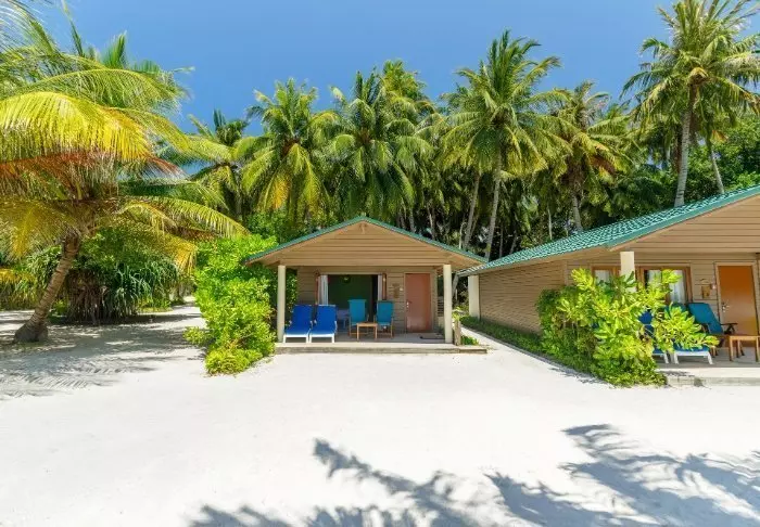 Eine Beachvilla ist 50 m² groß und bietet Platz für 2 Erwachsene und 1 Kind oder 3 Erwachsene. Alle Villen liegen an der Ostseite der Insel, sodass Sie aufwachen und den wunderschönen Sonnenaufgang beobachten können. Sämtliche Zimmer sind in frischen Farben und Farbtönen eingerichtet, die gut zu der Umgebung auf den Malediven passen. Das dazugehörige Badezimmer bietet „Open-Air-Badeeinrichtungen“. Die Villen liegen noch dazu direkt am kreideweißen Sandstrand.