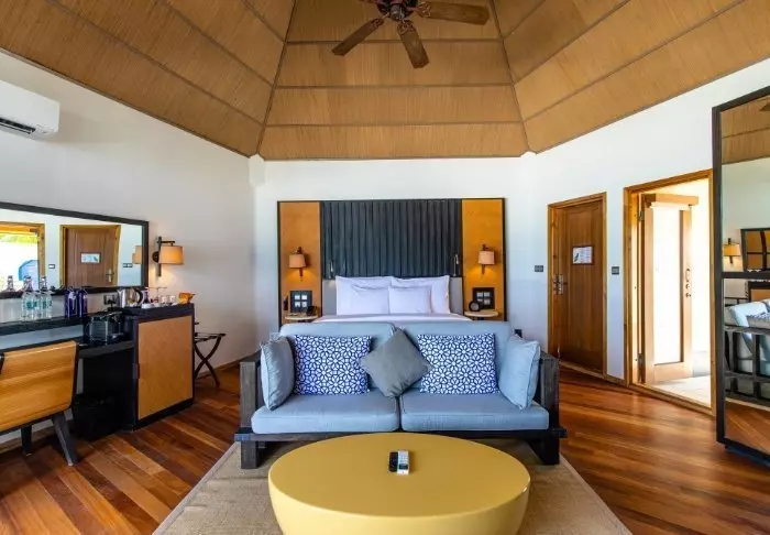 Meeru verfügt über insgesamt 284 Villen und bietet eine breite Palette von Zimmerkategorien, von eleganten Villen direkt am Strand bis hin zu luxuriösen Villen auf Stelzen im Meer. Sie sind alle geräumig, gut ausgestattet und bieten einen wunderschönen Blick auf das märchenhafte Meer. Jede Villa ist mit WLAN, Klimaanlage, Deckenventilator, Minibar und Safe ausgestattet. Die Strandvillen bieten Ihnen das Vergnügen eines teilweise offenen Badezimmers mit Regendusche, während die Villen auf Stelzen ein normales Bad haben. Morgens können Sie bei einer Tasse Tee oder Kaffee auf Ihrer Terrasse den Blick über das türkisfarbene Meer schweifen lassen und dabei die treuen Reiher der Insel beobachten, die jeden Morgen zu sehen sind.